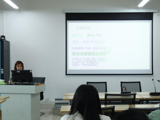 郭佳慧同學主要從論文選題、文章寫作、爬梳文獻以及參加學術會議這四個方面展開學術分享。首先,在論文選題方面,她表明選題一定要抓住熱點、盲點和重點,這三個點是選題的關鍵所在。其次,在文章寫作方面,郭佳慧同學表示好論文都是改出來的,唯有多看多練多改,才能寫出高質量論文,同時要學會給論文一個冷靜期,放置一段時間再打開會有新的收獲。再次,在爬梳文獻方面,她通過自身平常對查閱文獻的經驗摸索,推薦了大量相關網站,并強調在寫作過程中要先将引用的文獻标注出來,以防找不到出處。最後,在參加學術會議方面,郭佳慧同學指出要依序按照會議論文投稿、中稿後打印邀請函參會、打印車票并開酒店發票、會議開始前準備好彙報PPT、返校後準備好報銷材料進行報銷這五個流程進行,确保萬無一失。